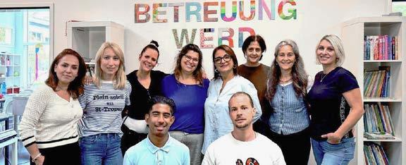 Patrizia Sardignolo (Mitarbeiterin Küche), Nicole Hänggi (Gruppenleiterin), Ida Butrico (Mitarbeiterin Küche), Blanka Giardino (Mitarbeiterin), Damir Paratusic (Mitarbeiter), Erza Selimi (Gruppenleiterin) Katarina Krilova (Mitarbeiterin), Merita Hasani (Mitarbeiterin), unten: Aaron Hawkins (Gruppenleiter), Carla Bosendju (FaBe). Nicht auf dem Bild: Emily Douglas (Mitarbeiterin) und Mejreme Bajrami (Mitarbeiterin).