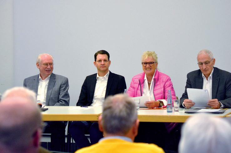 H. Engels begrüßt Josef Neumann, SPD, MdL, Sebastian Haug, CDU, MdL, und Franz Haug, ehem. Oberbürgermeister. Danach zusammengefasst die Vertreter der