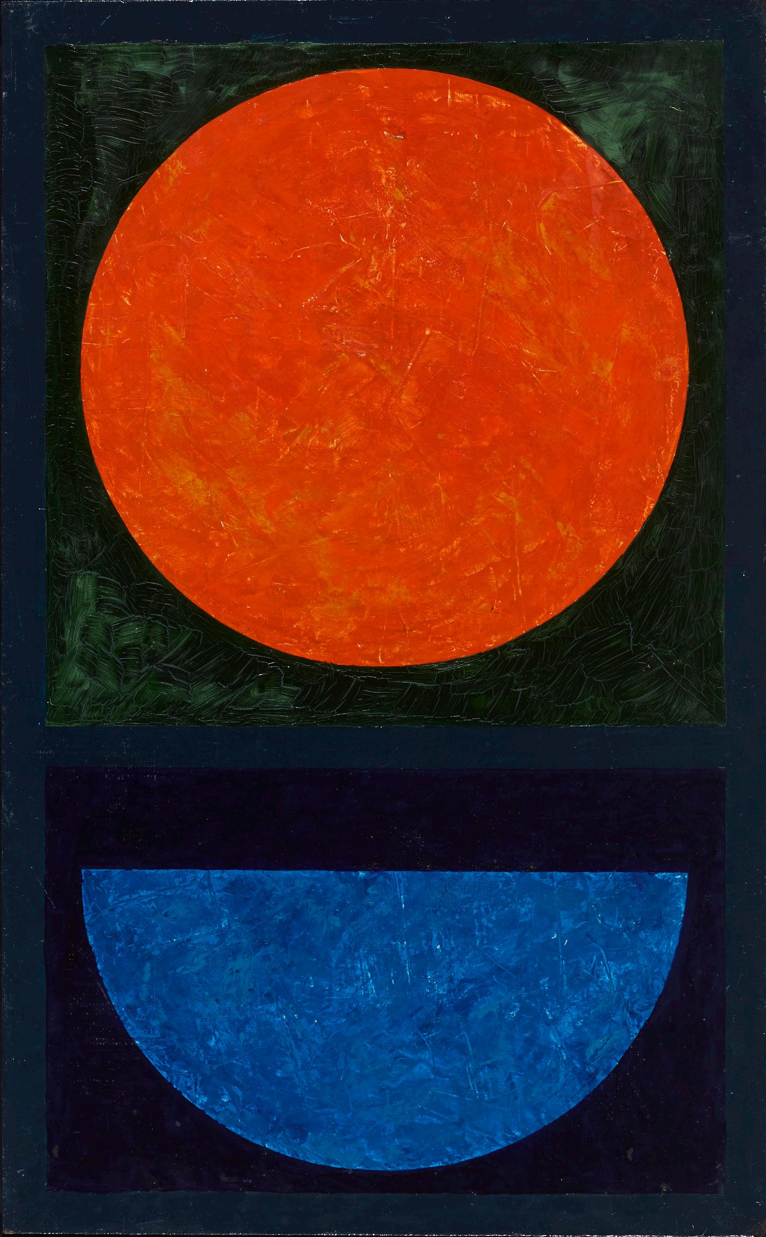 Seit den 1960er-Jahren bevorzugte Gessner das Quadrat. Hier konnte er die reinen Gesetzmässigkeiten der Form, der Farbe und der Bewegung am weitesten vorantreiben und in immer neuen Varianten konkretisieren. Das Fenster zur Welt der Sinneswahrnehmungen blieb für ihn gleichwohl eine wichtige Inspirationsquelle. So begann er auf Ibiza, wo er seit 1958 regelmässig seine Sommerwochen verbrachte, Sand in die Malfarbe zu mischen, oder er griff auf das Hochformat zurück, um fensterähnliche Formate und Strukturen in ihren Proportionen zu untersuchen (La Ventana, Kat. 72; Tierra de Ibiza, Kat. 80; Komposition im Goldenen Schnitt, Kat. 78).