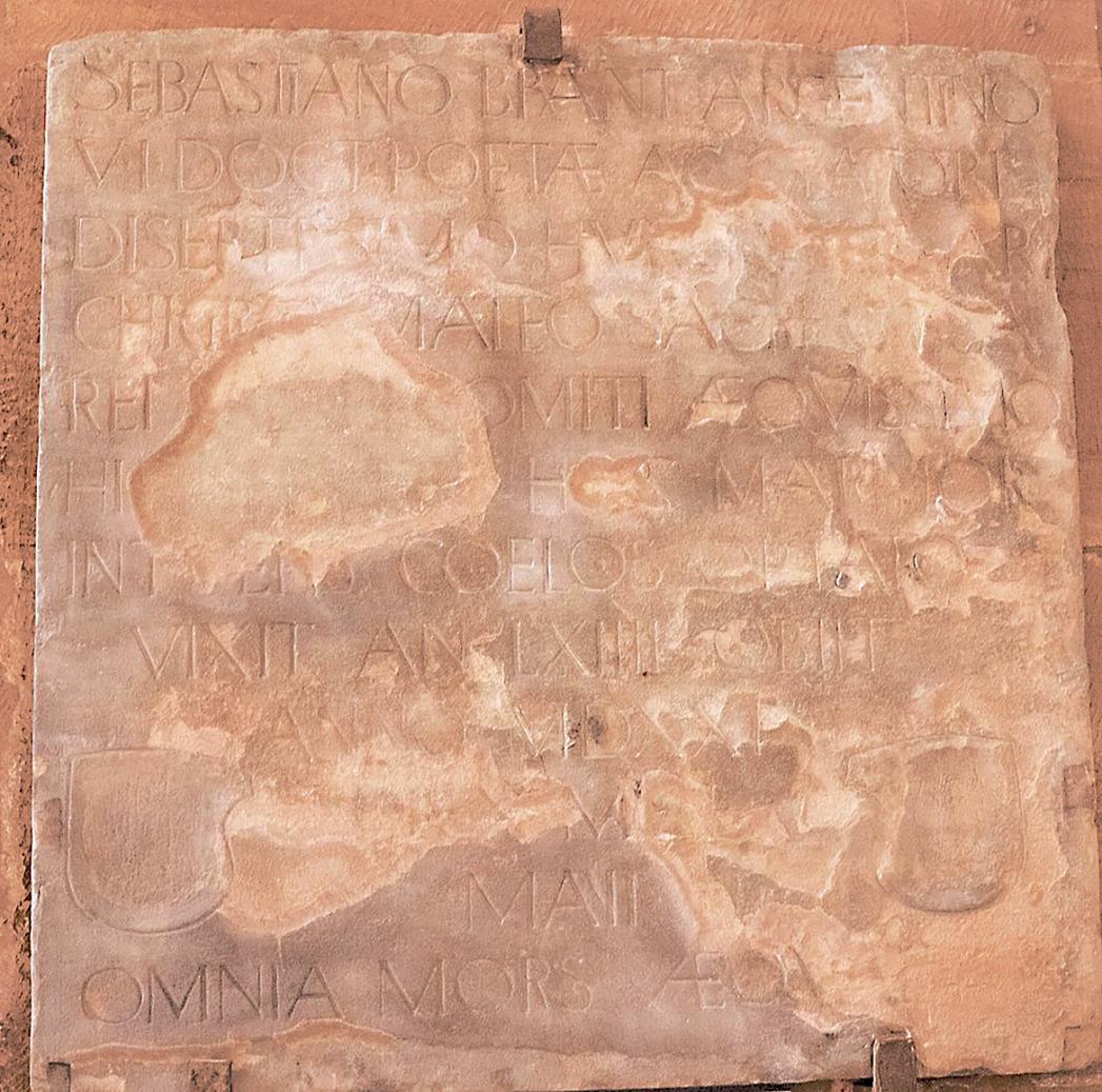 Abb. 1: Sebastian Brants Epitaph. Straßburg, Kollegiatskirche St. Thomas, Foto © Jean-Luc Hammann.