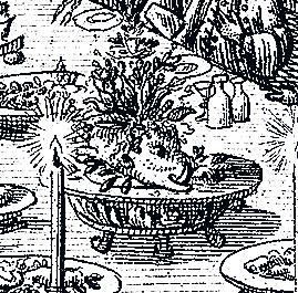 Barocke Bankette ziehen sich über viele Stunden; am Ende wird wohl niemand noch hungrig gewesen sein. Was geschieht dann mit den Schau-Essen? «At the ende of the banquet, they may eat al, and breake the platters, dishes, glasses, cuppes, and all things, for this [sugar] paste is very delicate and savorous.»47 Was heute allenfalls noch vor