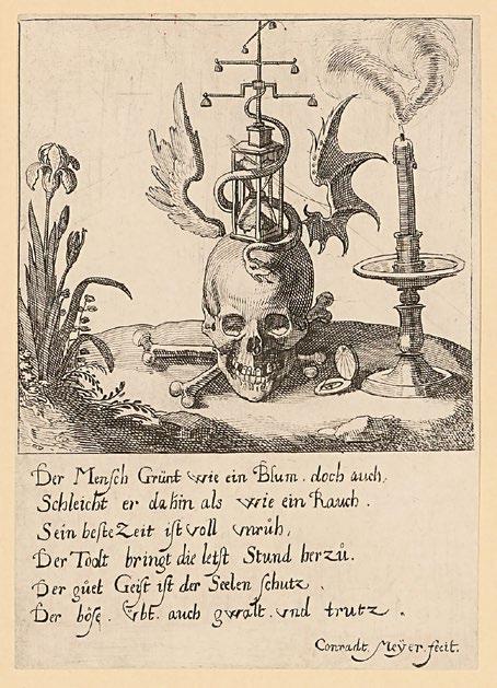 Abb. 8 | Conrad Meyer, Memento mori, nicht datiert, Radierung, 10,5 × 7,4 cm, Zentralbibliothek Zürich, Graphische Sammlung und Fotoarchiv, Varia Embleme I, 2
