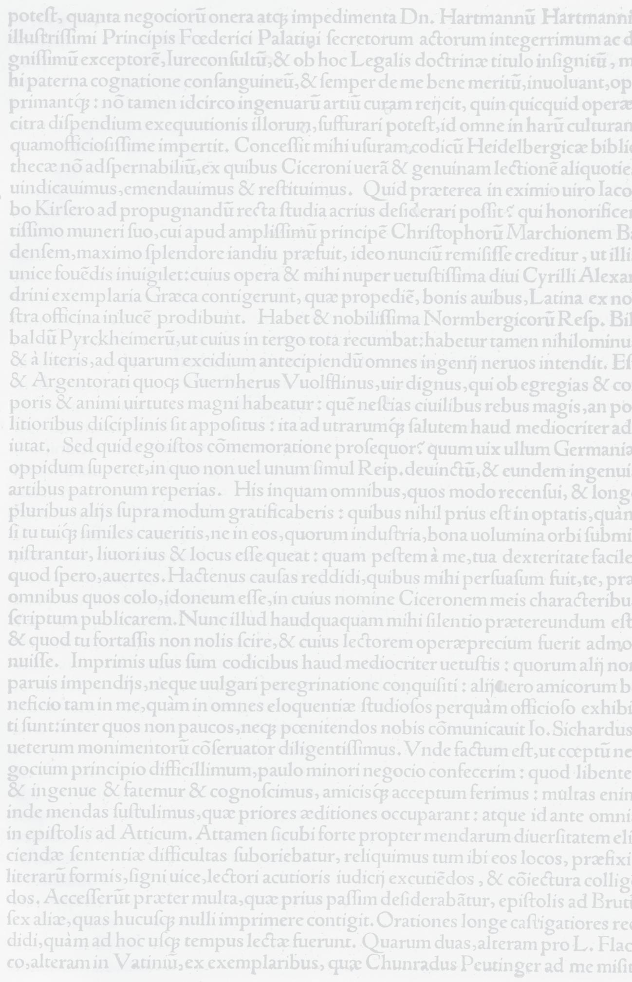 As Cratander implies in the letter of dedication, a major threat to the reputation and success of a printing house was the custom of rival printing establishments to create cheaper reprints of books that had originally been put together with a lot of effort, time and funds. Only in 1531 (three years after the publication of Cicero’s works by Cratander) did a rule come into effect in Basel that banned reprints within three years after the first publication. Some protection against such unauthorized reprints was offered by obtaining the imperial privilege (again banning reprints within a certain period), which Cratander did, with the dedicatee’s help, as he says (Praef. 11): it can be seen on the title page of the Cicero edition.