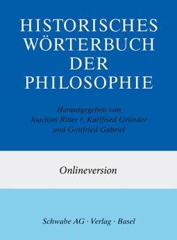 Das Historische Wörterbuch der Philosophie – eines der bedeutendsten geisteswissenschaftlichen Wörterbücher – dokumentiert anhand zahlreicher präziser Belege Herkunft und Geschichte von 3.670 philosophischen Begriffen und zeichnet den Wandel ihrer Bedeutung und Funktion von ihrem ersten Auftreten bis heute in rund 6.000 Einzelartikeln nach. Alle Lemmata sind in der Volltext-Datenbank HWPh online digital verfügbar und können über Register aufgerufen sowie mittels verschiedener Suchoptionen durchsucht werden.