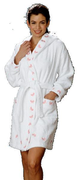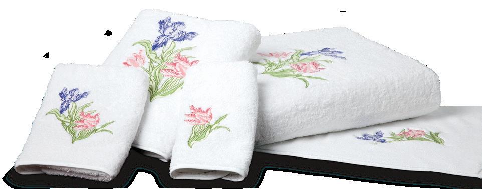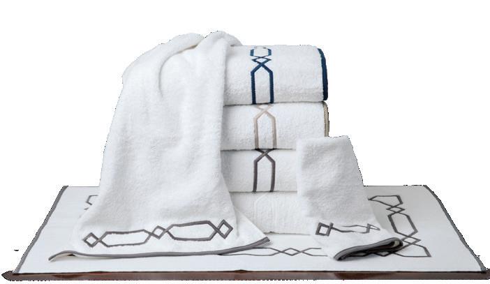 For a touch of romance in the bath, let two hearts become one in Pink or Blue embroidery on ultra-absorbent White cotton terry, 600 g/m2 . Lovingly made in Europe, with impeccably bound edges and piped scallops at both ends, these charming towels are a natural for “his and hers”. Matching short robe for her.