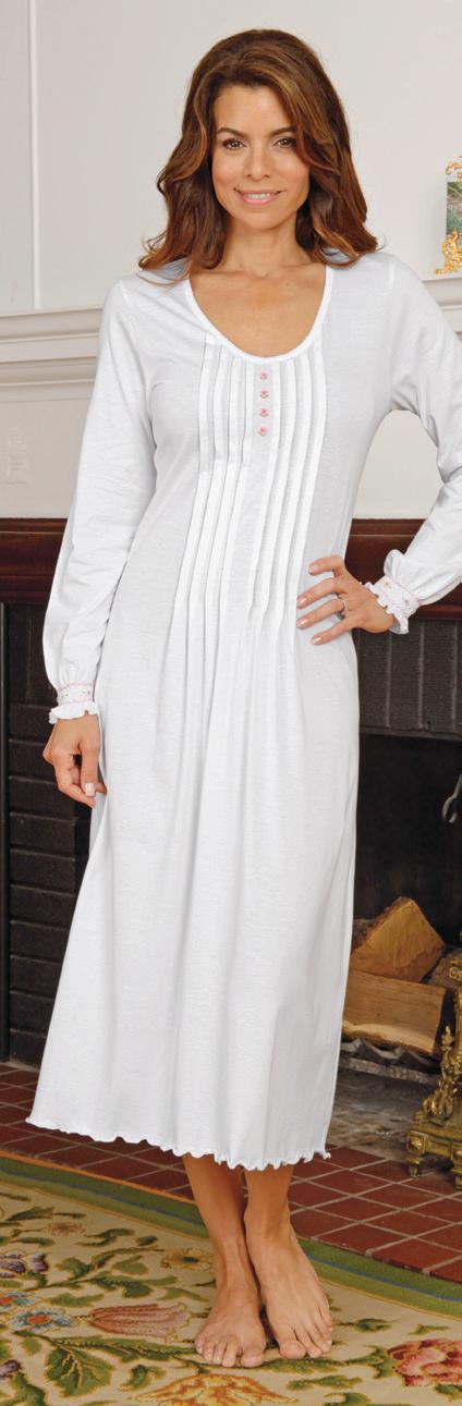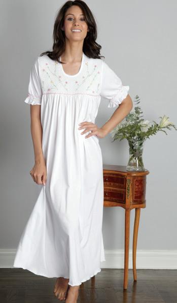 n instant classic. Reminiscent of regal nightgowns from the Victorian era, only more comfortable thanks to the luxurious everyday softness of the jersey pima fabric. Bathed in stunning White for an angelic beauty with finely embroidered lace along the collar to show off the exclusive, artisan-style quality. Made in Peru.