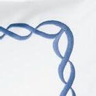 Finely wrought and stunning to behold, you will fall in love with these exquisite linens. Thousands of tiny stitches, each done by hand, creates a winsome Blue floral motif, while the gently scalloped flange of this import is detailed with tiny loops at the border. All done on silky smooth 100% Egyptian, 600 thread count cotton sateen from Italy for the highest degree of comfort. Available in Blue on pure White.