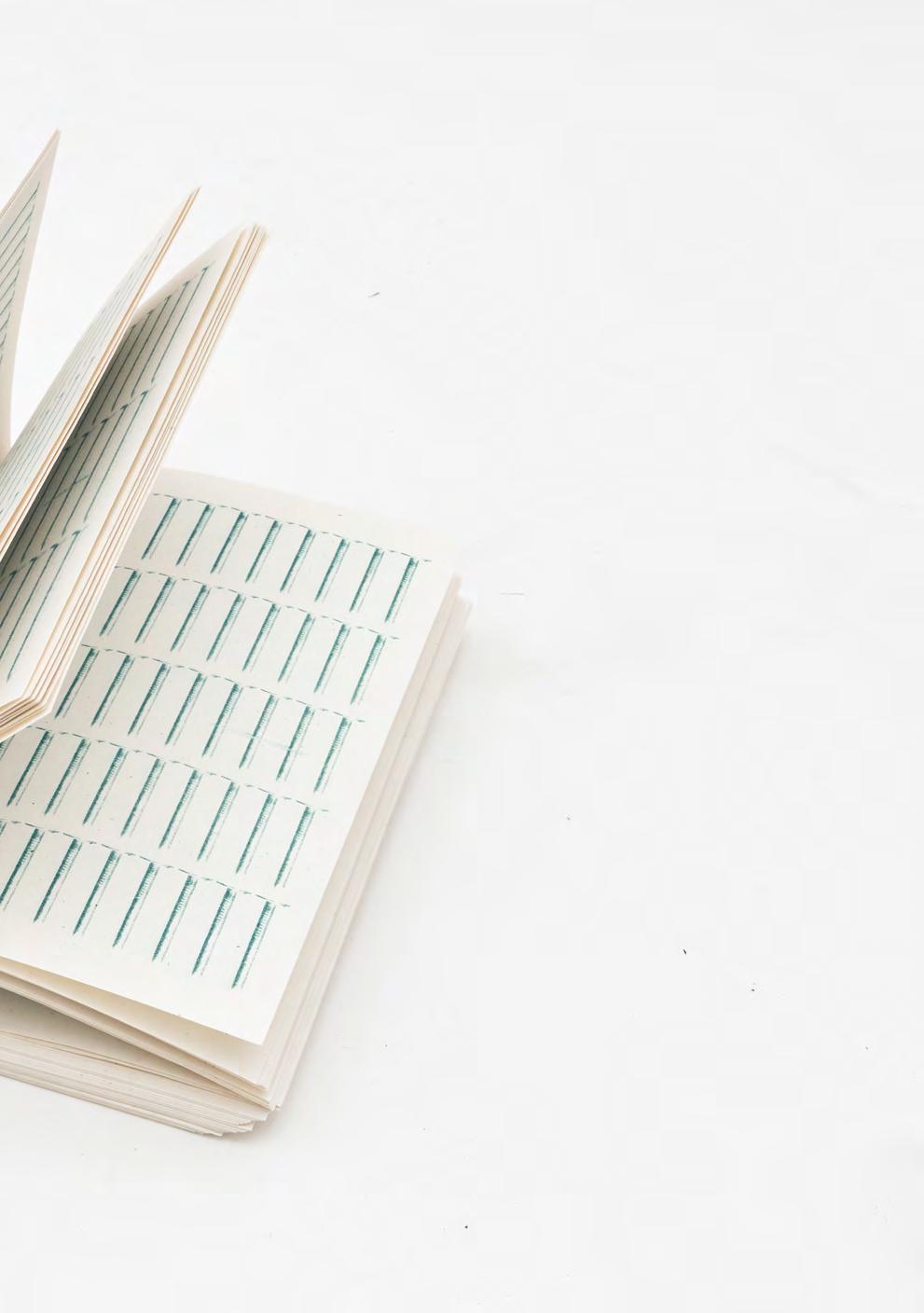 Apart from resolution and exchange value, one might imagine another form of value defined by velocity, intensity, and spread.”2 Given the technological shift and expansion in our own means of production, the ease of entry into book and printmaking is higher than ever before. Maybe then we should also re-assess the qualities and reasons why we as architects use books and other printed materials. Given that all media is better, and faster spread through digital channels, the book must become something more than a vehicle for communicating information. Treating the book as an object, one with material that simultaneously addresses its creation in a digital-skewed culture, and celebrates its physicality. “Creating a book anew in and for the digital age, such works renew a conventional book form(the codex) by harking back to ancient techniques of book construction and recreate the intimacy of reading and sharing a book... Reverting to old traditions of bookmaking to provoke new orientations toward the object of reading, and as such, inviting reflection on reading as an embodied cognitive, and social practice”3