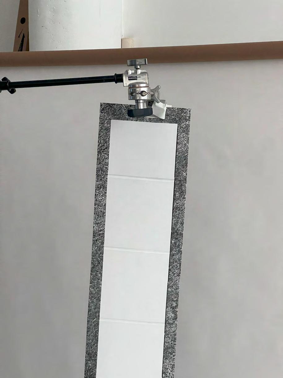 A book containing a 1:1 stitched photograph of the 3 meter column found in Mies van der Rohe’s Villa Tugendhat. The book is binded using a leporello binding, where each page is constructed using one sheet of book-board cut to DIN A4 paper size and cased in the printed photograph.