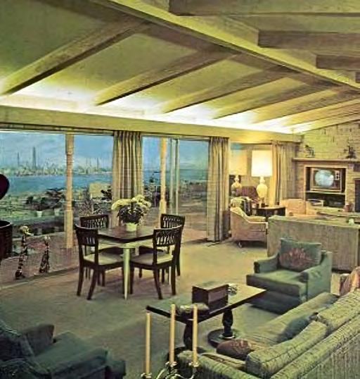 At the world’s fair of 1964 in New York, Jay Swayze presented a new concept of the home conceived around the realities of the Cold War in the US. The underground world home was a large 6,000 square foot underground bunker home that featured air conditioning and windows with backlit murals to emulate the qualities of living on the surface.