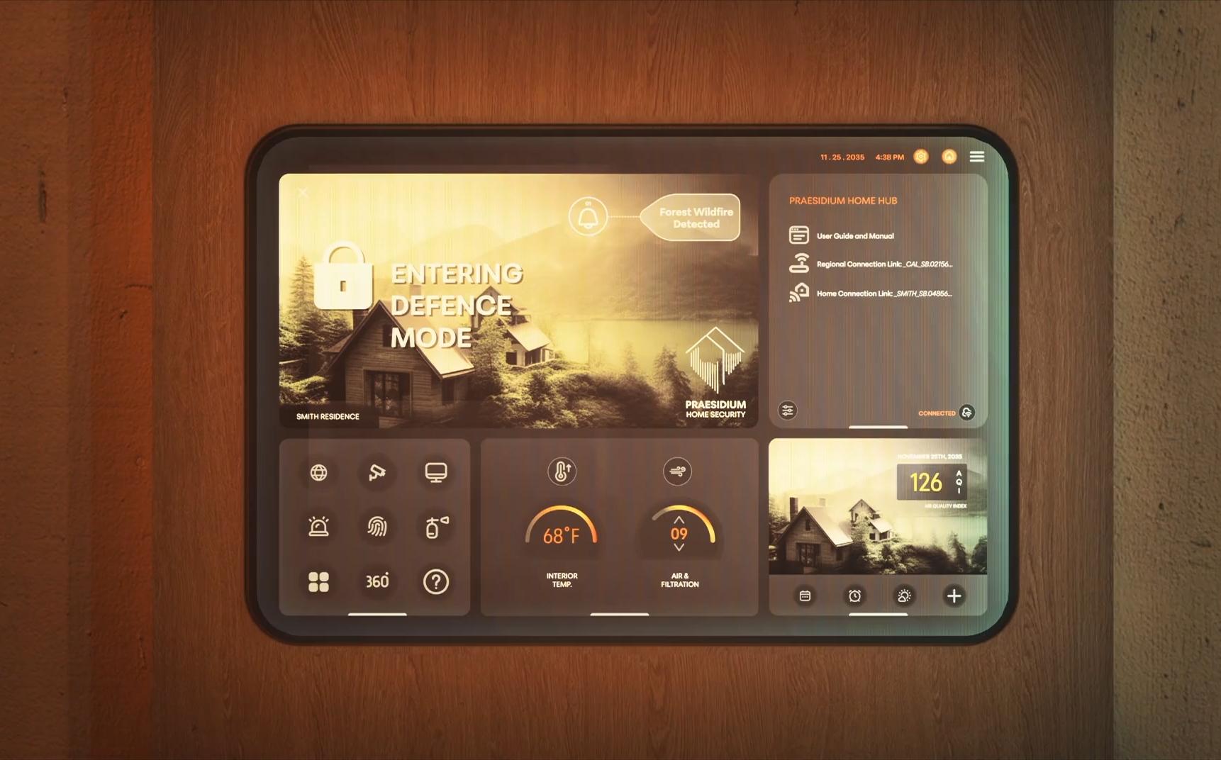 The home within the film, designed by Praesidium, is nestled in a wildfire-prone area and boasts a sophisticated network of fire protection systems incorporated into the walls and furniture. While exuding the warmth and comfort of a home, these safety measures are conspicuous, instilling a sense of security in the family. The smart home serves as a dependable refuge, a fortress of protection during crisis.