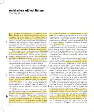 “Since there is no Nature to which one must cleave, what matters is not an anesthetized experience of feeling part of something bigger but establishing a bond of intimacy between beings. Architecture without Nature, then, must concern itself with establishing these affiliations.”