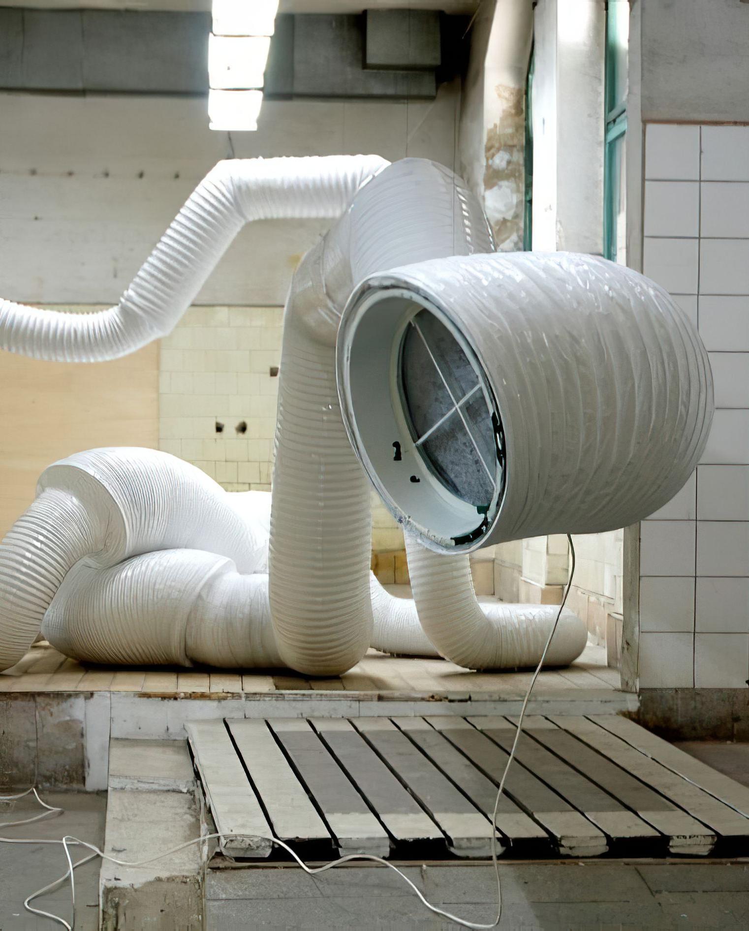 Berndnaut Smilde exposes these systems and their spatial consequences in his exhibition titled ‘Conditioner’ (2009). We lose perception of the intended scale of these ducts and instead contend with the reality that eventually our desire for comfort will contend with our desire for space. The relationship between the two desires and the consequences of comfort will bring into question how far are we willing to go to maintain it. His work titled ‘Nimbus’ (2015) explores the manual manipulation of atmosphere within a space. His interest lies in the fleeting and ephemeral nature when attempting to alter the climate and how quickly conditions change or must be maintained.
