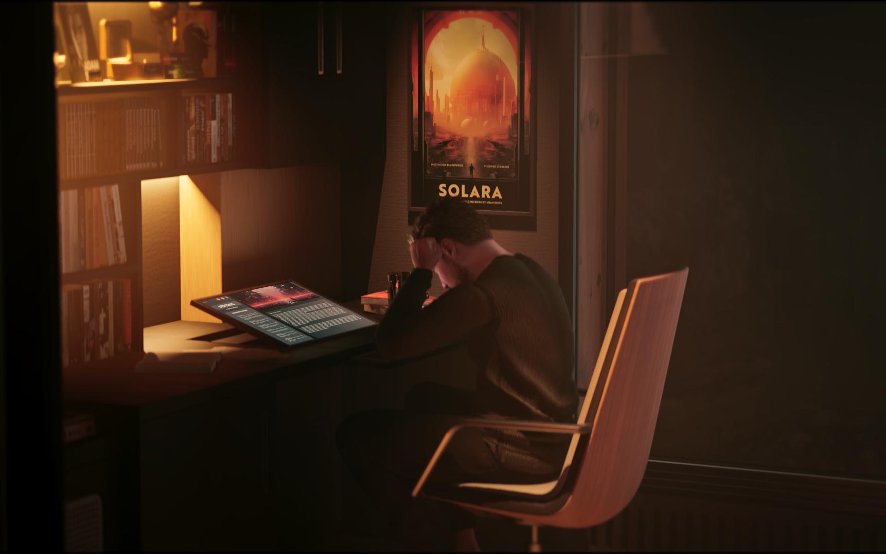 ADAM, 42, is an unfulfilled novelist who struggles to stay inspired but has had an extended career as a successful writer. As a character, he becomes easily fixated. His confidence in his ability to overcome whatever challenge he focuses on means he rarely asks for help. He is an aloof and inattentive patriarch who spends most of his days isolated in his study. He is distant from his family, and his fixation on his work means he may neglect his responsibilities as a father and husband.