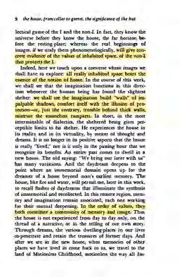 "Within each one of us, there exist a oneiric house, a house of dream memory. Each home we live in after subsequently is a permutation of that imagined oneiric house."