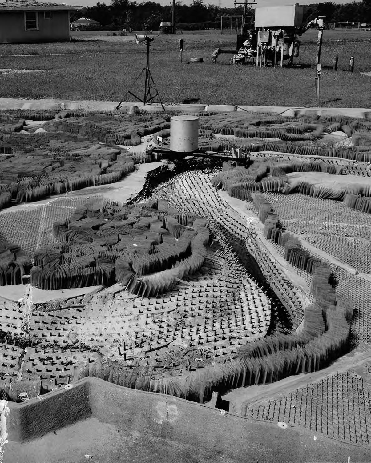 The Mississippi River basin model (1949) was a scaled physical model of the river in response to devastating floods in the early 1900’s. The model allowed for the prototyping and development of flood control infrastructure along the river. This scale model, its experiments, and the reality of the river are all entangled as the scale of the human is dwarfed in exchange for our attempt to manipulate and unfold the natural orders of the world.