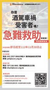 酒駕在台灣一直是一個嚴重的問題,每年都造成許多可避免 的車禍和人身傷害。尤以本會專為服務脊髓損傷傷友,有不少 人即曾是酒駕車禍的受害者,當不幸的車禍受害而導致脊損的 傷害發生時,傷友本身除面臨著長期身體和心理挑戰外,常常 是家庭發生巨變,生活與經濟陷入困頓。為了幫助這些受害者,