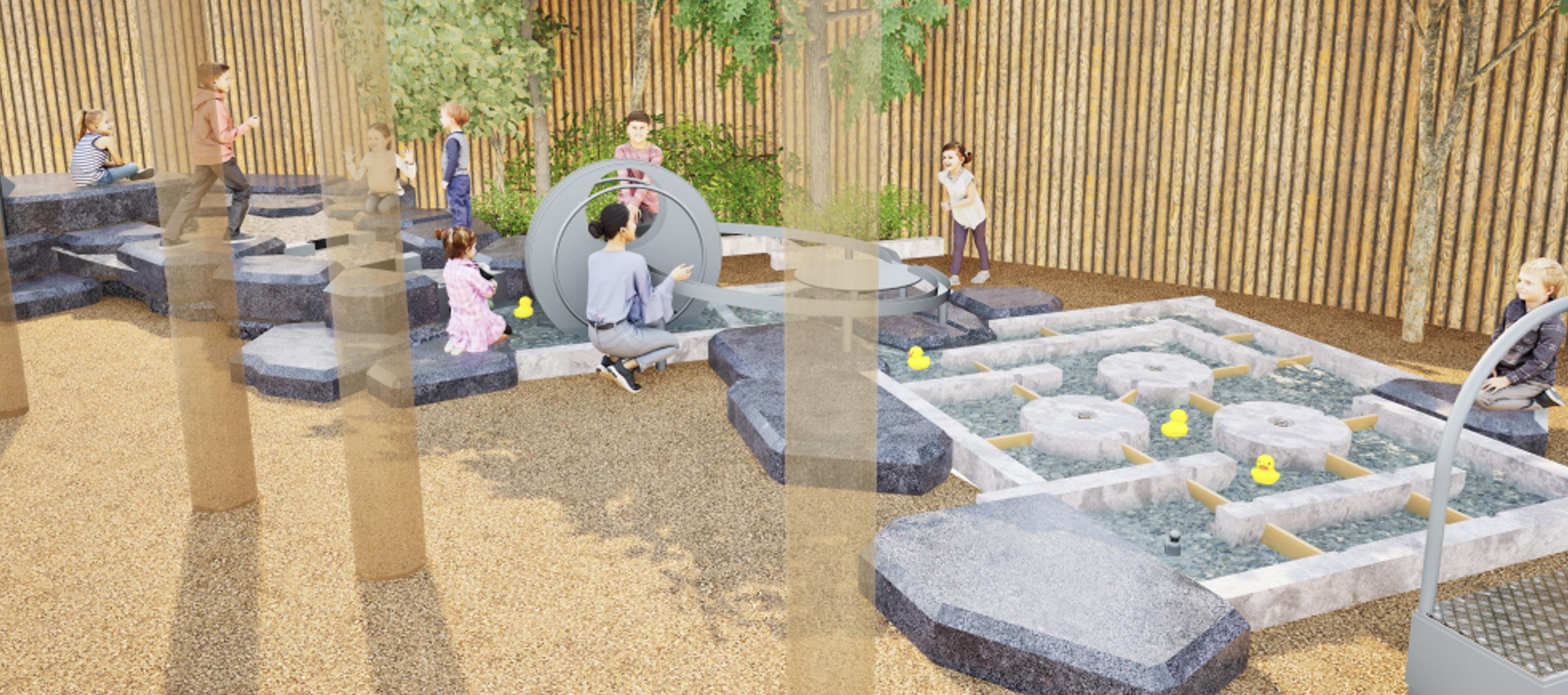 Coming soon: a Stump House with an optical illusion ceiling, a Rope Net Climber, and two soundbased exhibits that will bring fresh energy to the park.