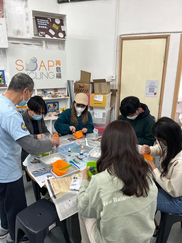 In collaboration with Soap Cycling, the event was held to offer students an authentic experience of utilising excessed soap collected from hotels, recycling them via watering and food colouring to make their own unique soap