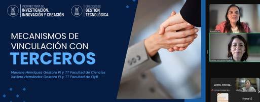 La charla estuvo a cargo de las gestoras de Propiedad Intelectual y Transferencia Tecnológica (PI y TT) de la DGT, Xaviera Hernández Figueroa y Marlene Henríquez Urrutia, quienes abordaron diversos aspectos del tema, resolvieron inquietudes y aclararon las creencias negativas más comunes al respecto.