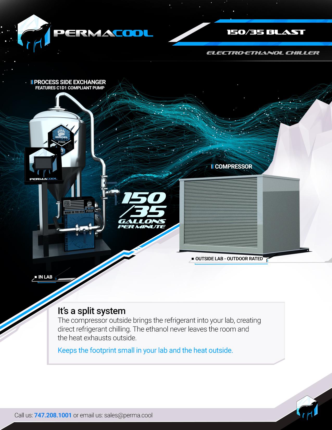 The Blast 150/50‘s Perma Cool Triple Split™ design is what makes our chilling systems the fastest on the market. Every Perma Cool Triple Split™ system provides three zones, the chilling, the in lab process heat exchange, and a centralized control system.