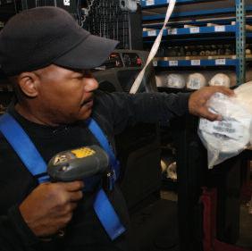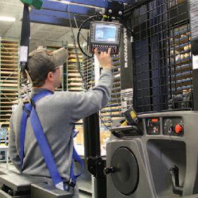Fork lif ts at the CDC include computer monitor s that allow operator s such as Donovan Edmundson to accurately access ever y item in the center through an operating system that is vir tually paperless.
