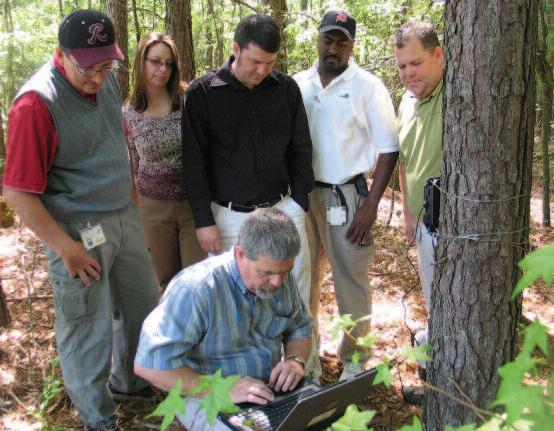 ABOVE The environmental stewardship team at Anderson Plant has installed a camera near wildlife feeding areas to monitor the nocturnal movement of deer and other animals Reviewing and downloading recent photos are, from l e f t to