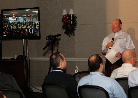 TOP LEFT Glen Raven associates were brought together via a global WebEx connection in late November to launch the company’s new vision statement Glen Raven President Allen E Gant, Jr connects with Glen Raven associates in China (shown on the video monitor).