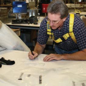 Bill Steelman prepares a fabric roll for shipping at the Tri Vantage CDC