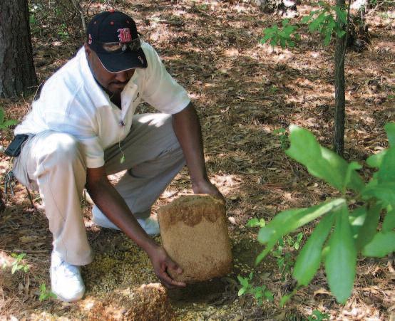 BOTTOM Rodney Jones, technical section leader, finishing, adjusts a salt lick for deer