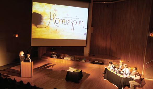 (left) The panel of judges consisted of, left to right, Susan Szenasy, Metropolis magazine; Michael Catalano, Capitol Awning Company; Paige Mullis, Glen Raven; Kevin Kelly, Globe Canvas; Allen Gant III, Burlington Downtown Corporation; and James Cropper, Valley Forge Flag.