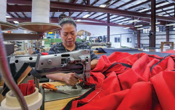 In addition to the challenges of a tropical climate, Tropical J’s is also challenged by its remote island location. Employees have developed expertise not only in operating the company’s equipment, but also in maintenance and repair. The company’s production planning system, which was developed by Justin, plays a central role in assuring that materials are on-hand when needed and shipped to the island as economically as possible. Crucial for Tropical J’s is its relationship with Trivantage, Glen Raven’s distribution subsidiary.