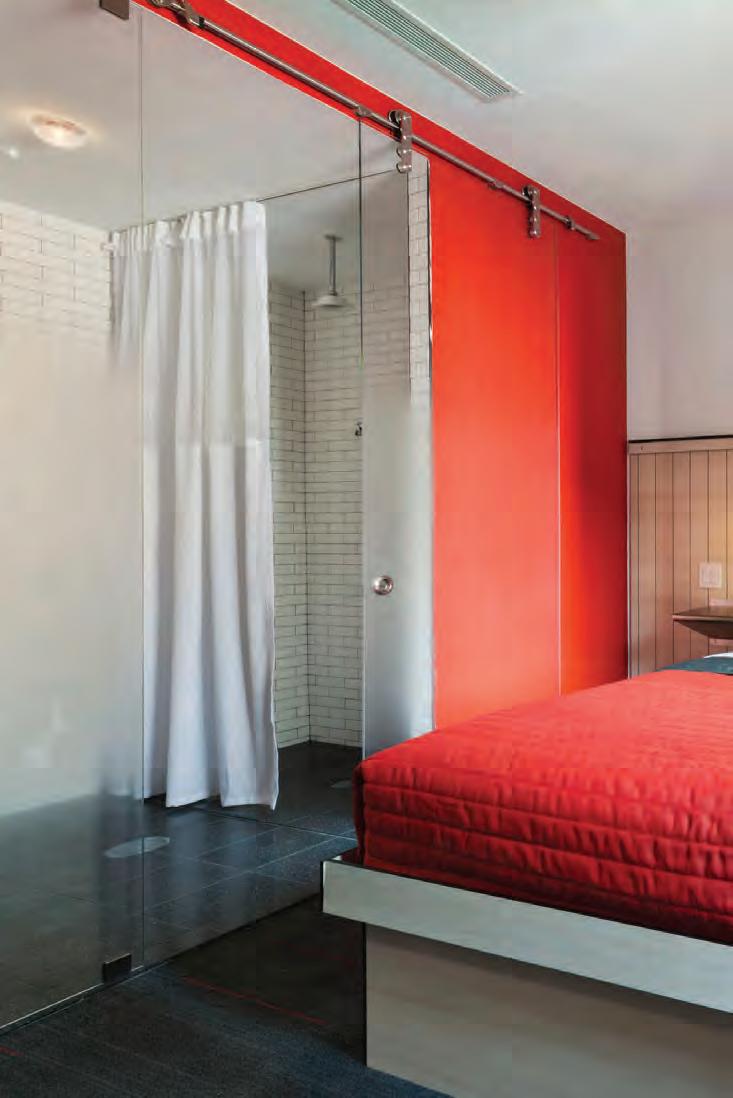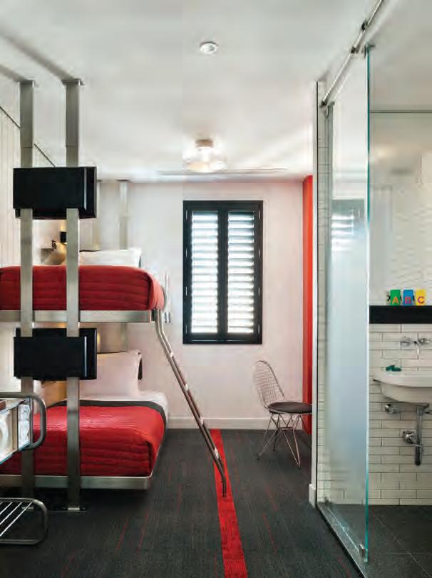 “In design, form follows function,” she said. “I prefer to design a space with a neutral canvas of materials and then punch it with color. In the case of Pod, this was accomplished by painted features on one wall and the selection of fabric colors for the bedding. This approach to design creates a space that is timeless, simple, clean, classic and fresh.”
