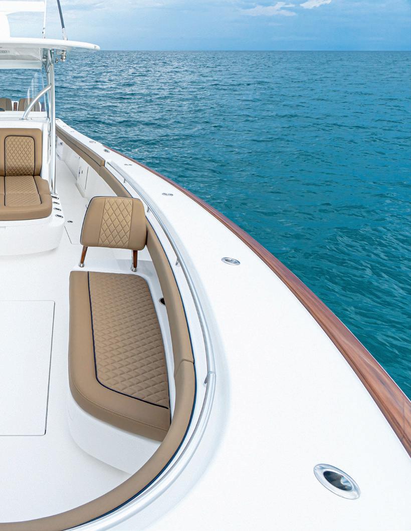 Sunbrella Horizon, the first vinyl marine seating material by Sunbrella, features a luxuriously soft hand specially designed to resist bacterial staining, cold cracking, stretching and fading — and the fabric has made an impression across the globe. | Page 02