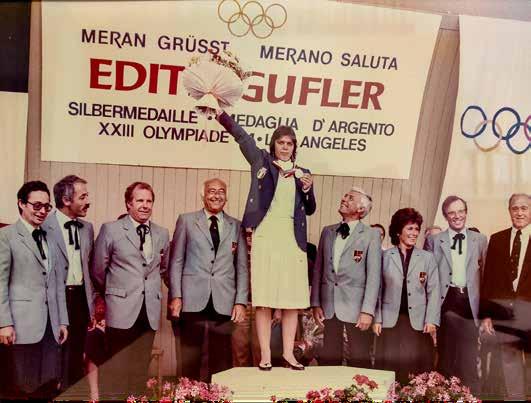 Edith Gufler, geboren 1962 in Meran; 2 Kinder, 30 und 28 Jahre, lebt seit 8 Jahren mit ihrem Partner in Klausen. 20fache Italienmeisterin im Luftgewehrund Kleinkaliberschießen. Silbermedaillengewinnerin im Luftgewehrschießen 1984 bei Olympia in Los Angeles. Edith war über 30 Jahre Mitglied beim SCM und in den Sektionen Schwimmen und Turnen aktiv. Sie spricht mit uns über ihre Erfahrung von damals.