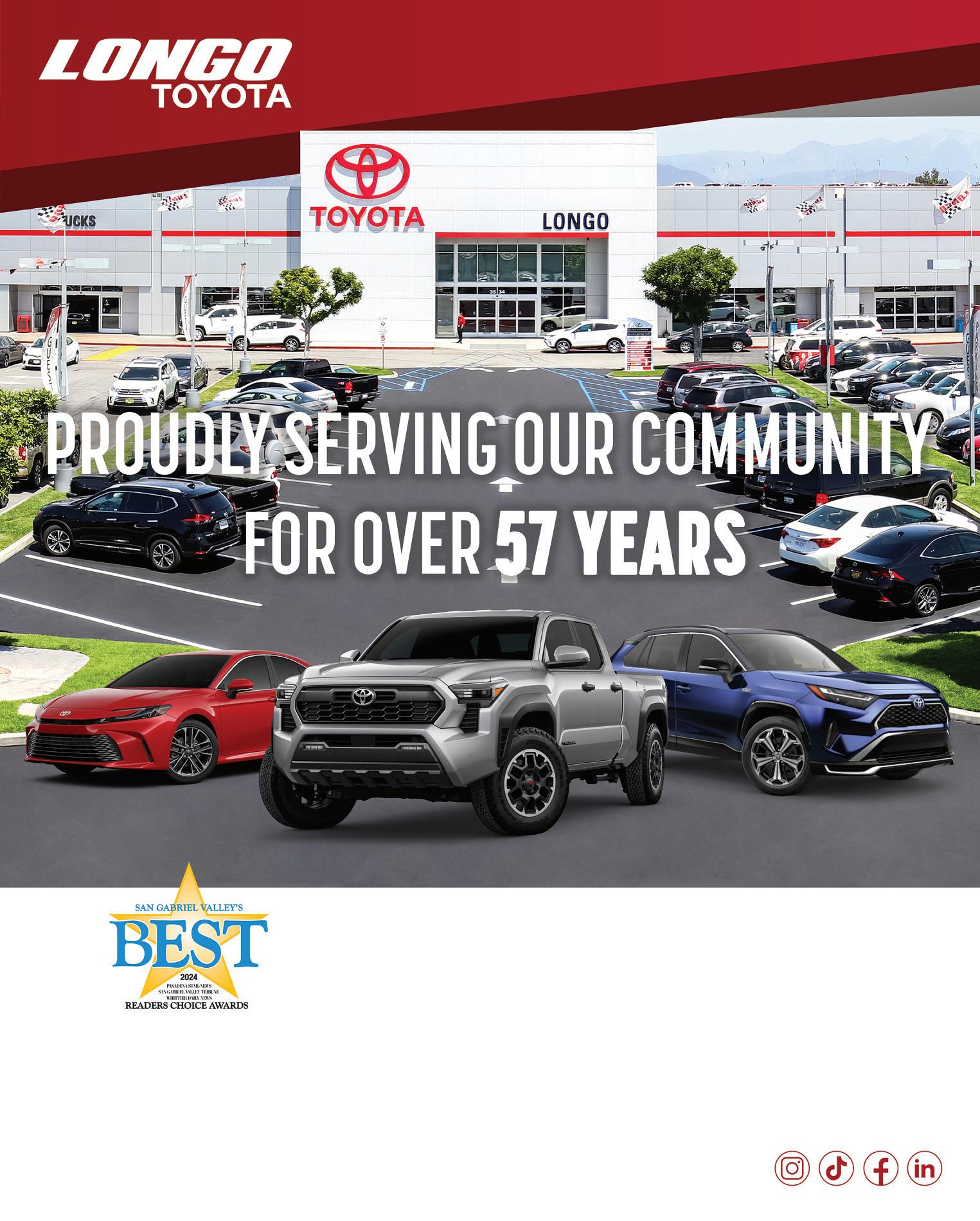 ThankYouSanGabrielValleyNewsGroup“Readers”.Wesincerely appreciateyourvotesrecognizingourdealershipastheBestNew Truck,FavoriteNewCar&FavoriteUsedCarDealershipfor2024.