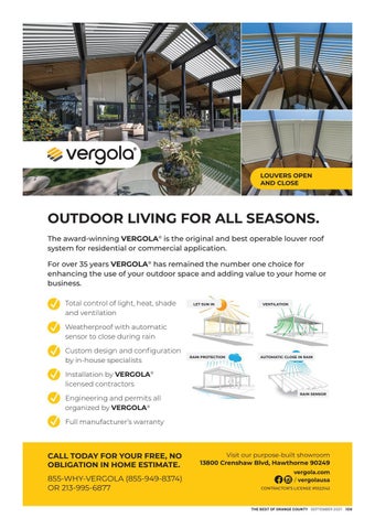 Visit our purpose-built showroom 13800 Crenshaw Blvd, Hawthorne 90249 vergola.com / vergolausa CONTRACTOR’S LICENSE #1022142