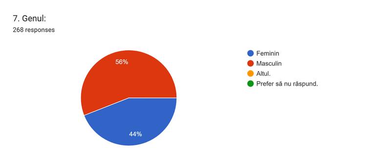 Din cele de 268 înscrieri în program, 44% au fost completate de către persoane de gen feminin (118) și 56% de către persoane de gen masculin (150)