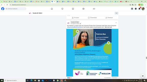 Cimentate a fost promovat și pe pagina de Linkedin Școala de Valori, prin intermediul a 21 de postări, media impactului a fost de 400 de persoane