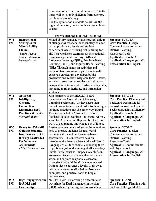 This in-person conference will include over 130 sessions, presentations by the ACTFL Teacher of the Year, the announcement of the SCOLT Teacher of the Year, exciting exhibits, optional preconference workshops, and much more!