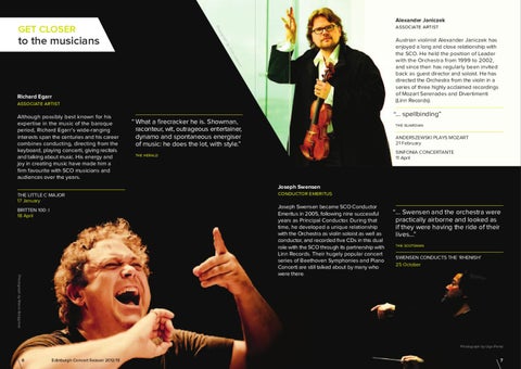 Richard Egarr associate artist Although possibly best known for his expertise in the music of the baroque period, Richard Egarr’s wide-ranging interests span the centuries and his career combines conducting, directing from the keyboard, playing concerti, giving recitals and talking about music. His energy and joy in creating music have made him a firm favourite with SCO musicians and audiences over the years. THE LITTLE C MAJOR 17 January