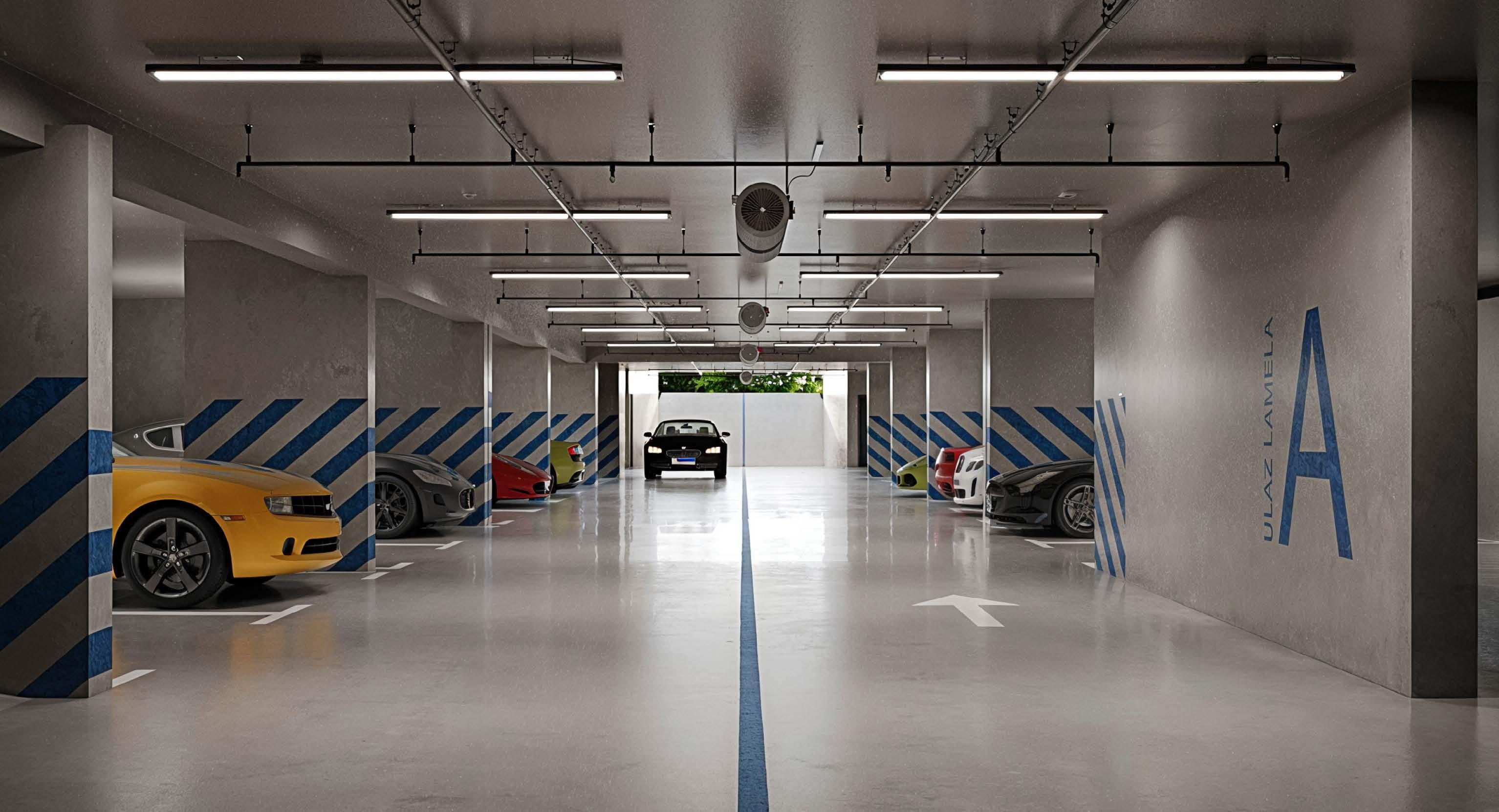 U BluePoint Residences, komfor praktičnost ne završavaju se na vašim stambenim ili poslovnim prostorima – već se protežu i na naša garažna rešenja. Ovaj savremeni poslovno-stambeni kompleks nudi 348 garažnih mesta od kojih je 16 namenjeno za osobe sa invaliditetom, obezbeđujući prostrane i sigurne opcije za parkiranje vozila svih gabarita.