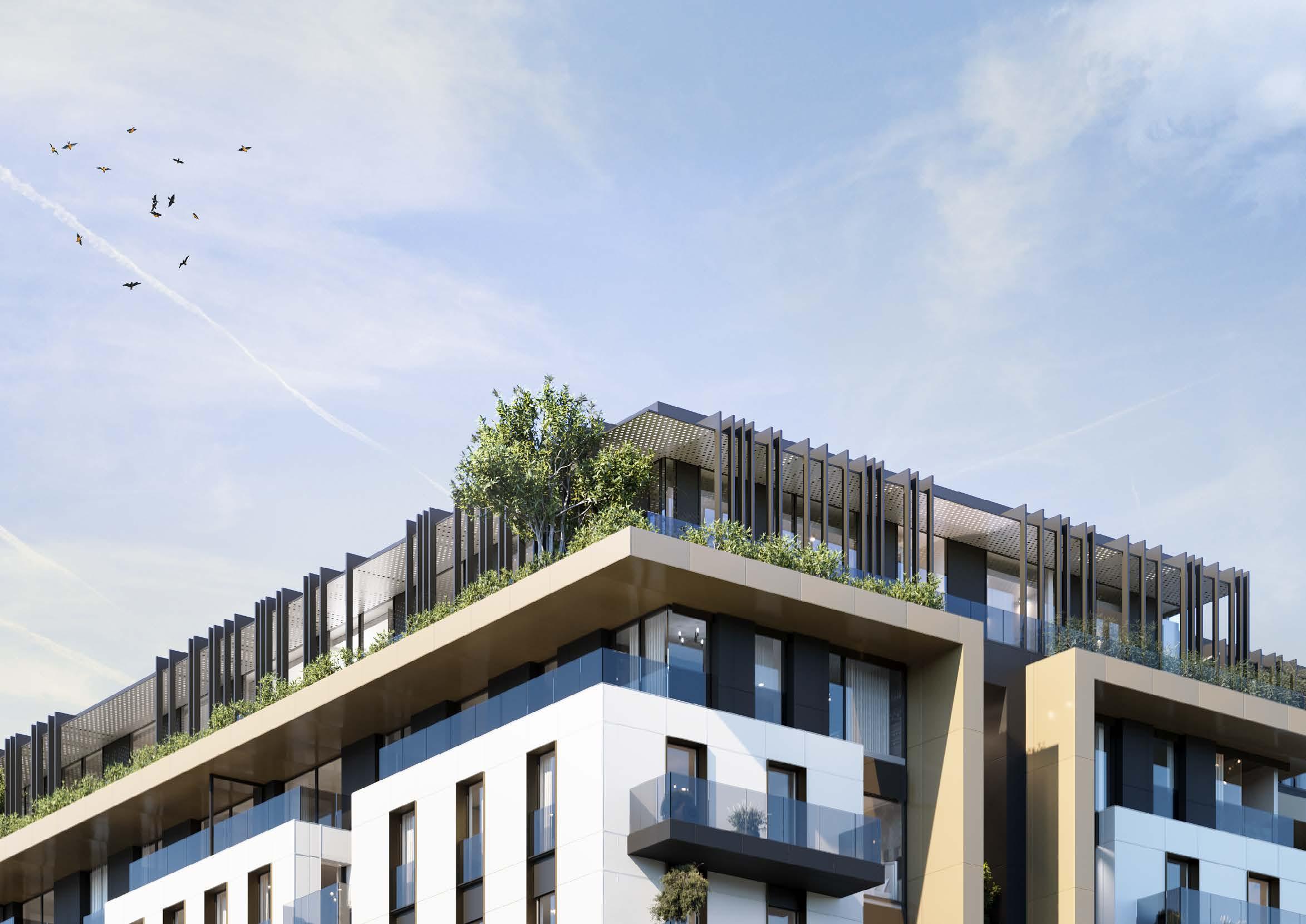 Uživajte u pažljivo projektovanim dvorištima, travnatim površinama i zelenim krovovima koji donose prirodnu lepotu privatnost. Ove zelene oaze ne samo da doprinose celokupnom estetskom utisku, već doprinose ekološkoj funkcionalnosti objekta.