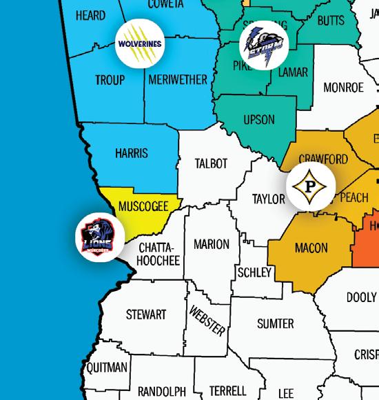 has fi ve titles (2016, 2017, 2020, 2021 and 2023), and North Oconee (4A) has one, last season in 4A. Woodward (5A) has one title (2020) while Tri-Cities has two (2019, 2022). Wheeler (6A) has nine titles – 1994, 2002-03, 2005, 2009, 2015, 2020, 2021 and 2023. Newton (when it was Newton County) has one title in 1964.