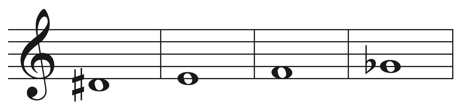 Flutes: "Pitch-coloured" air sound. Finger notated pitches.