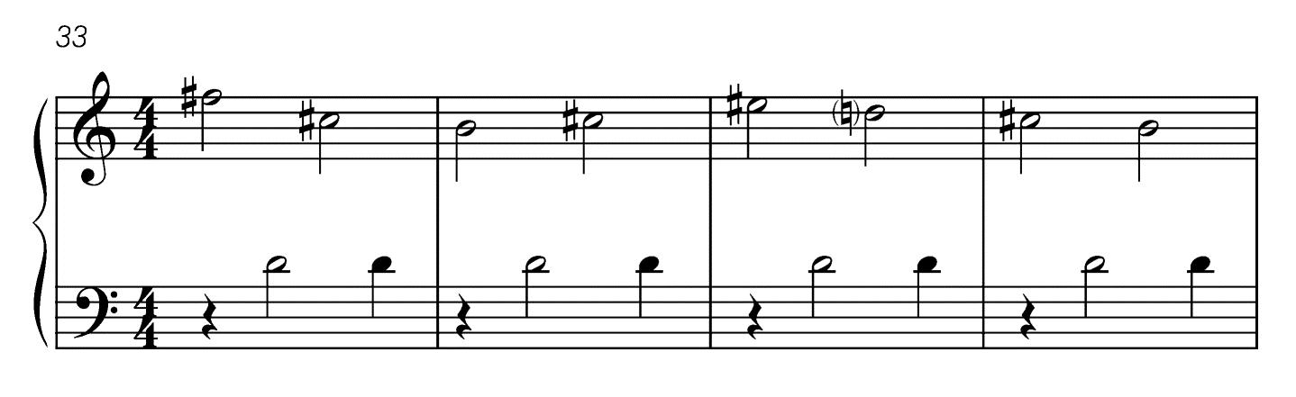 The 2nd movement is easily the longest at 8 minutes on paper. It is constructed out of this 2–bar motive: