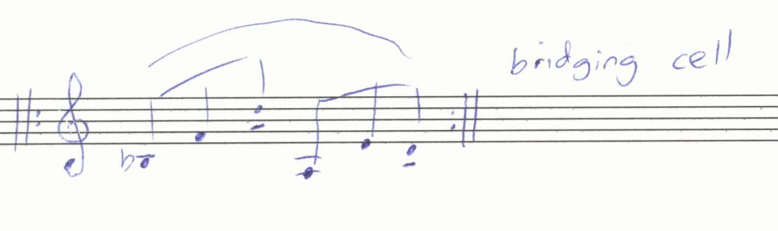 Following each of the 5 ‘Perspectives’ are 5 bridge sections, whose melody is always the same, yet whose tail end motive gets longer each time. The tail end (or bridging cell) was composed first:
