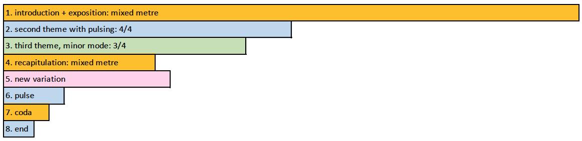 The structure of the first movement might be described as telescopic or reductive, in that the sections generally get shorter and shorter: