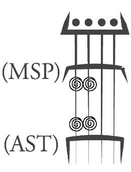Prepare strings III + IV with two circular paperclips each (one AST and one MSP)