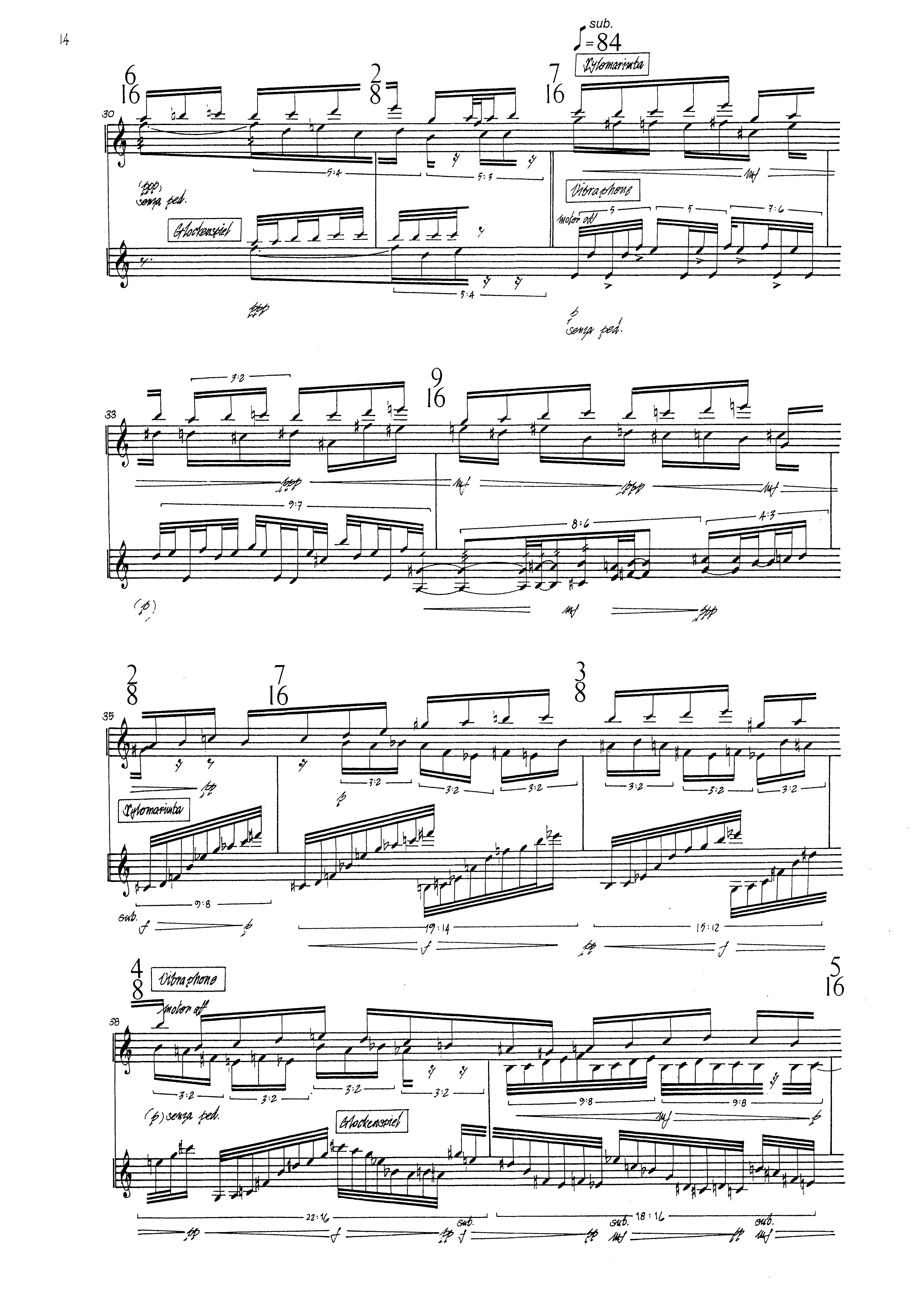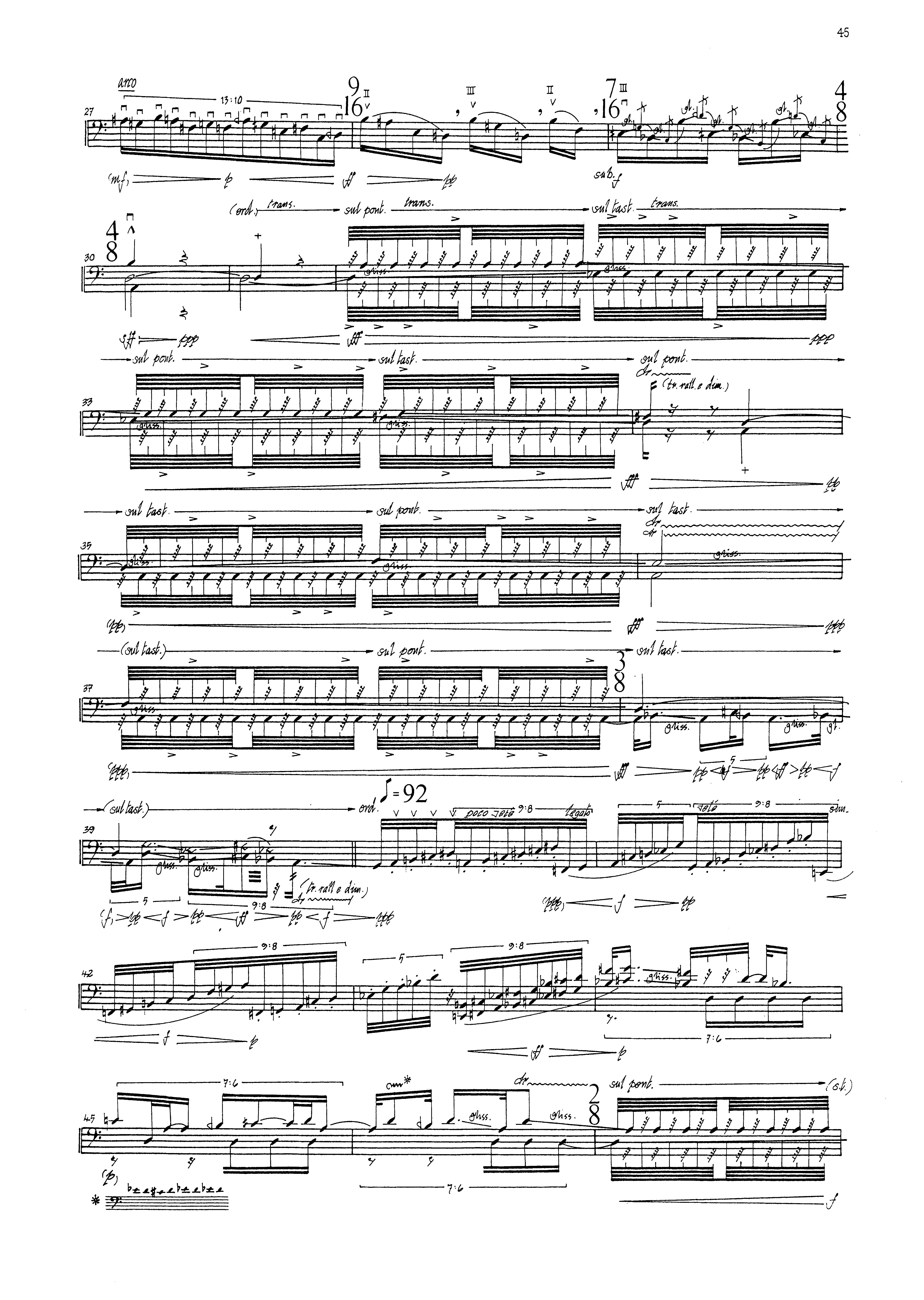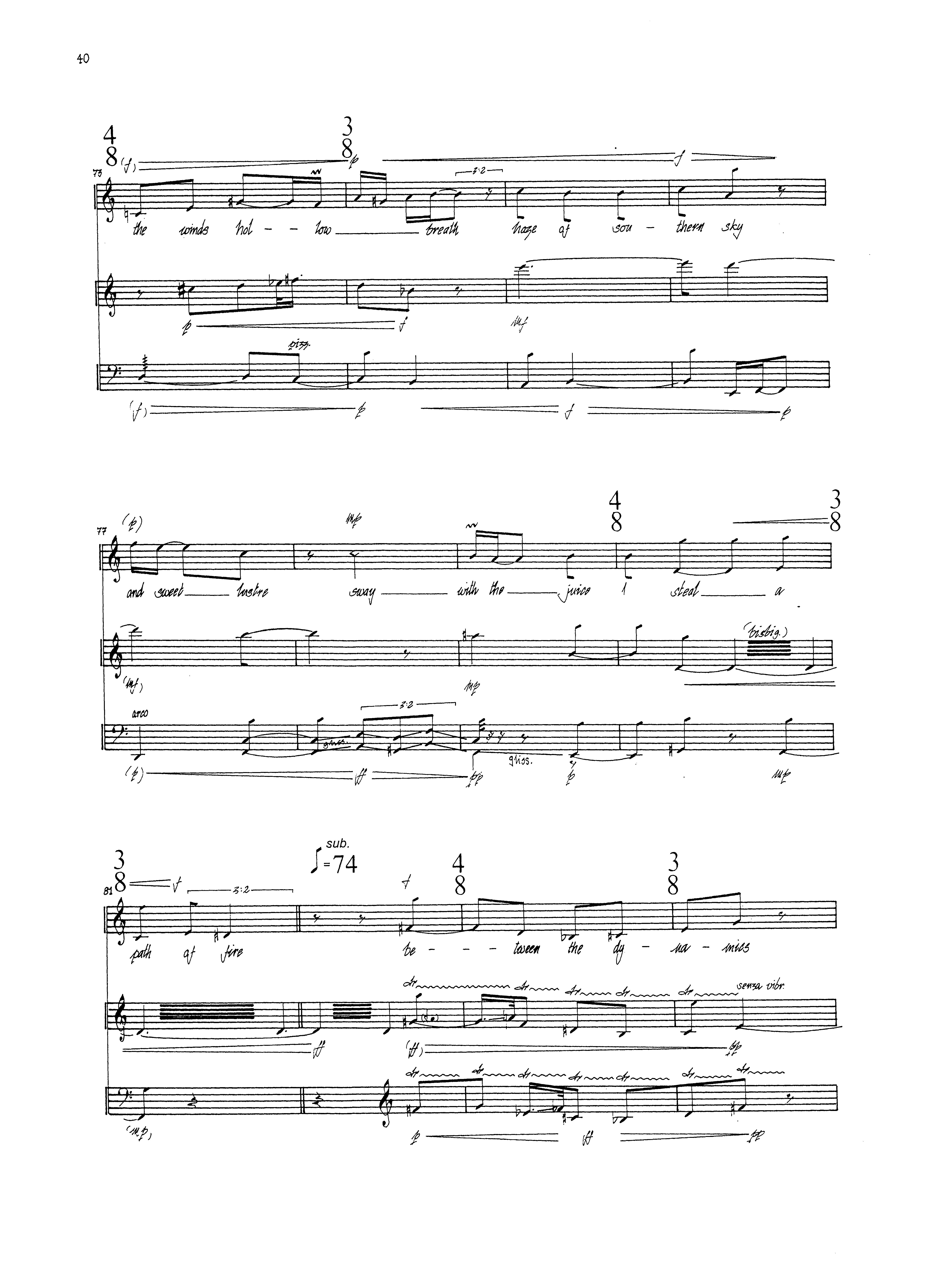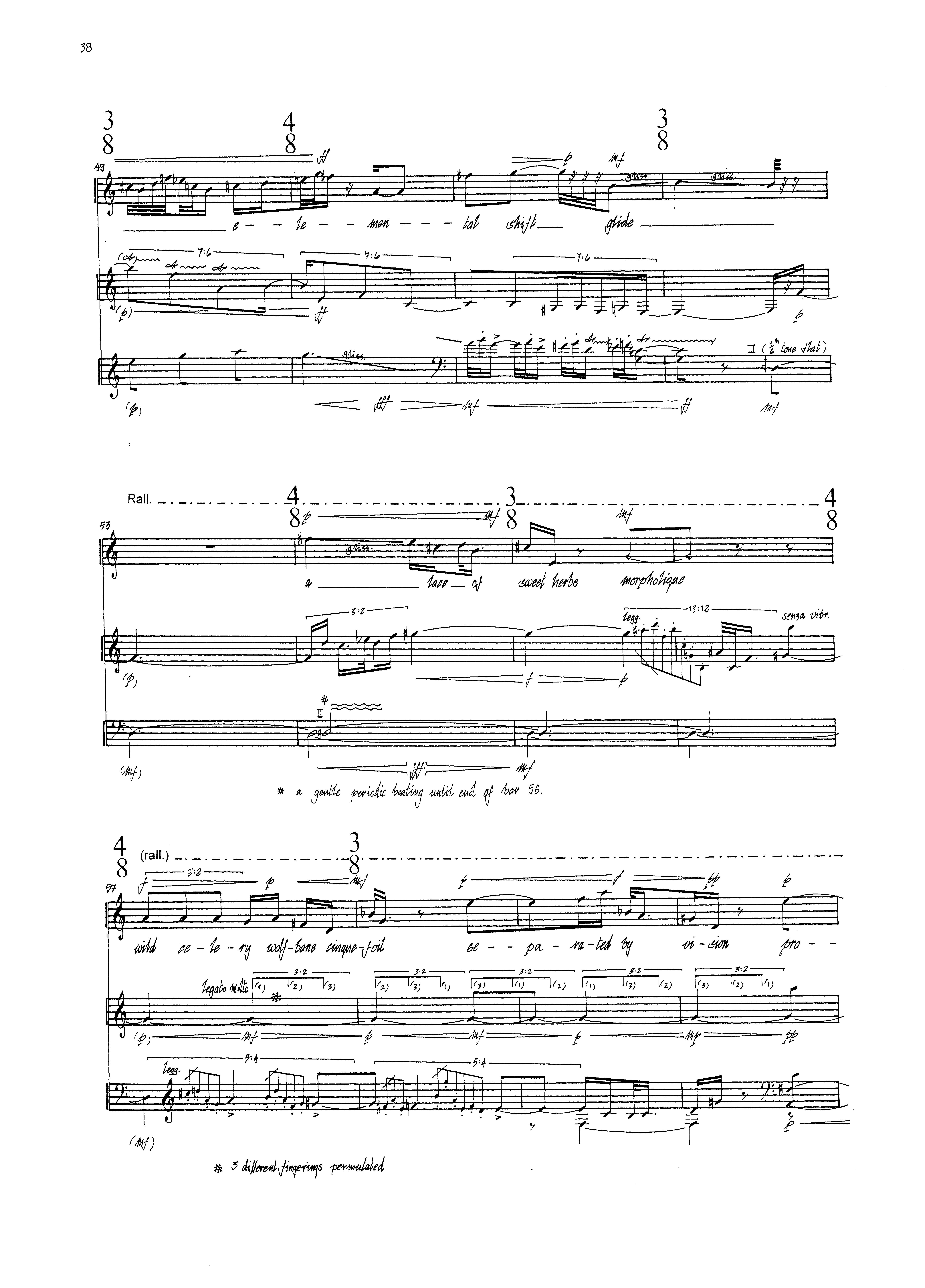 James Dillon (b. 1950) has been published by Edition Peters since 1982. In that year, Parjanya-Vata for solo cello won the Kranichsteiner Musikpreis at the Darmstadt Summer Course for New Music. His String Quartet No. 1 was premiered by the Arditti Quartet the following year at the Huddersfield Contemporary Music Festival – one of many festivals regularly featuring Dillon’s music. Other works include his ‘German Triptych’ (Überschreiten, 1985; helle Nacht, 1987; Blitzschlag, 1996) and the opera Philomela (2004). In 2003 he was awarded an honorary doctorate by the University of Huddersfield and in 2007 took up the position of Professor of Composition at the University of Minnesota.